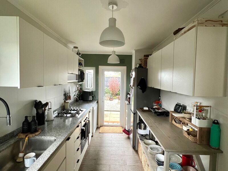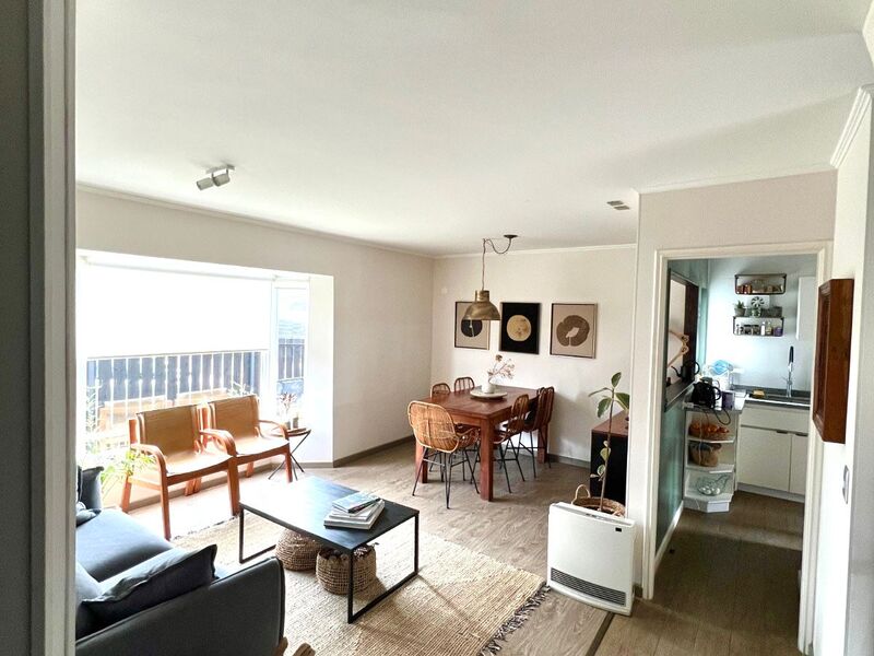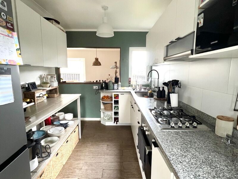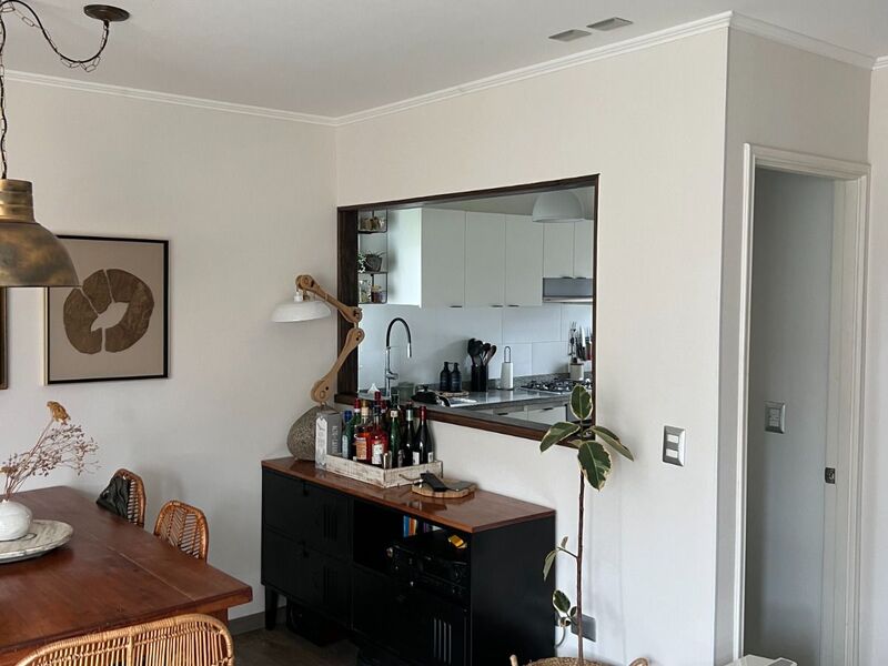 Cocina Equipada, con mejoras, tales como apertura hacia living (semi integrada), muebles extras incorporados, con cambio de puerta a termopanel y mejoras estéticas.